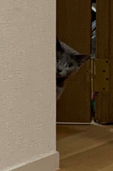 ▼有時候牠會悄悄從牆角探出頭,用可疑的眼神觀察主人,簡直就像電影中的大反派。