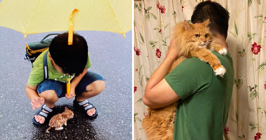 小男孩雨中與小奶貓相遇 10年後「一起長大」對比超驚人:大橘為重!