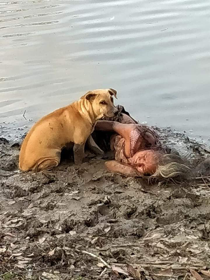 2021年09月05日狗狗是人類最忠誠的朋友,牠們無條件地愛著主人,願意對主人展現出無私的情感~日前泰國一位網友Ake Srisuwan在社群網站上分享了一張照片,只見一位老婦人躺在河邊的泥灘上,身上沾滿泥巴,兩隻狗狗守護在她旁邊,好像在說:「不能睡在這裡啊。」