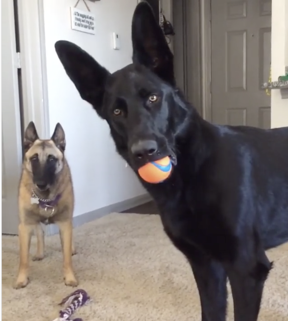 傻眼汪汪!黑德牧叼球球「聽小孩哭聲」嚇到掉下來 網笑翻:旁邊那隻也定格是怎樣~