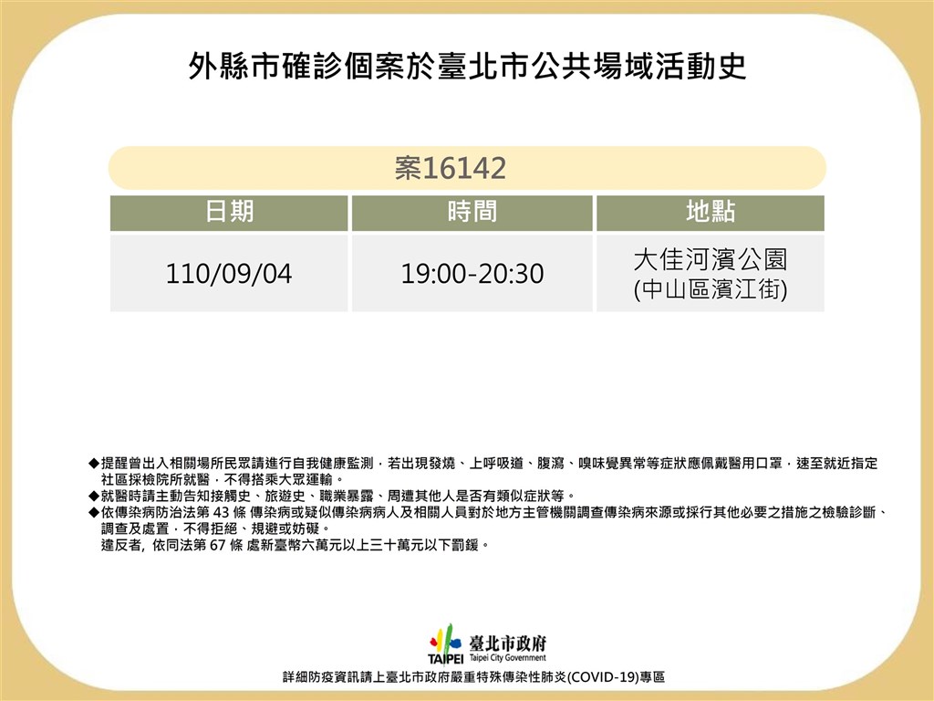 ▼根據各縣市公布的確診孩童足跡,其中不少孩童曾到過的地方不只新北市。一名6日確診的孩童(案16142)曾在4日到過台北市中山區的大佳河濱公園;另一名確診孩童(案16144)分別在8月28日及9月4日,父母自駕載其到過苗栗縣通霄鎮,並曾去過7-11便利商店白沙墩門市、白沙屯拱天宮及宮廟後方海灘。