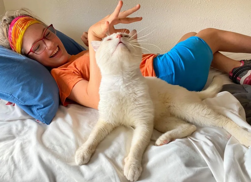 ▼動保組織幫辛納屈找到了一個合適的新主人-Kelly。Kelly一直想養貓,但她平時要靠電動輪椅出行,貓咪都害怕輪椅發出的聲音,所以她一直沒找到合適的貓咪。