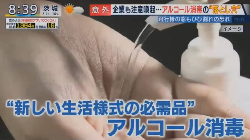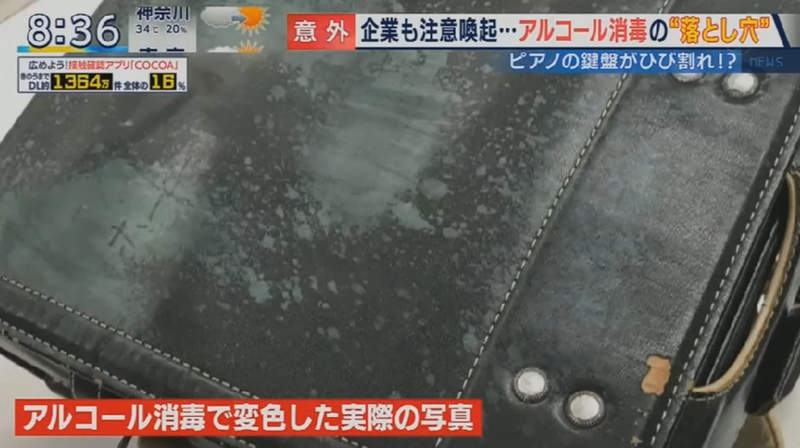 2021年09月10日疫情期間,酒精這類消毒產品成為了人們生活中的必需品。但在家中各處噴灑酒精,用酒精擦拭所有的東西可能會引發很多問題。日本富士電視台的晨間情報節目「とくダネ!」就做了一個「濫用酒精」的專題報導,來告訴大家酒精對很多產品可能造成的破壞。