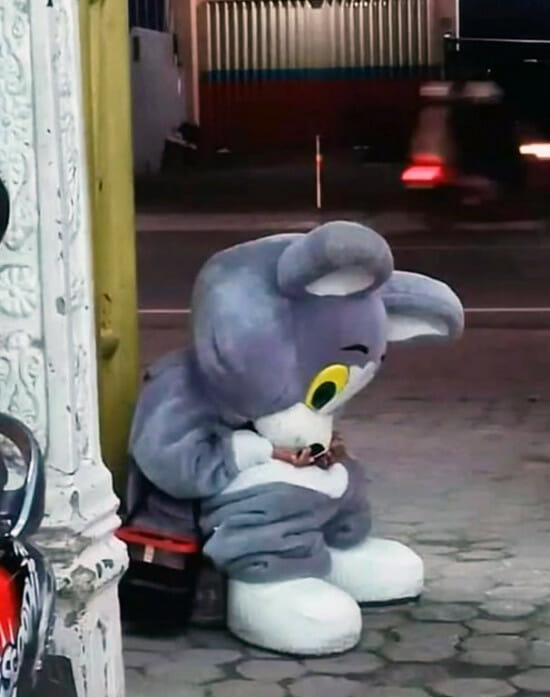 ▼今年8月底,一位叫Rahmadi的網友在IG上分享了一段影片。影片中,一個布偶工讀生正坐在路邊休息。下一秒他拿下頭套,大家這才發現那是一個小弟弟!這讓網友們非常吃驚,這麼小的孩子就出來工作了?