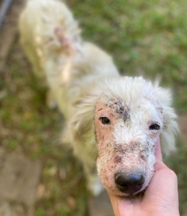 2021年09月22日美國德州休士頓(Houston)有一隻流浪狗,牠有嚴重的皮膚病,全身的毛都要掉光了,看起來醜醜的,還有點恐怖。牠試過向人類求助,但大多數人都對牠避而遠之。直到有一天晚上,牠在停車場看到一位女子。牠決定再試一次,於是鼓起勇氣向對方走過去~