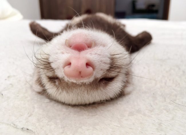 ▼雪貂睡得好香,小舌頭都吐出來了。