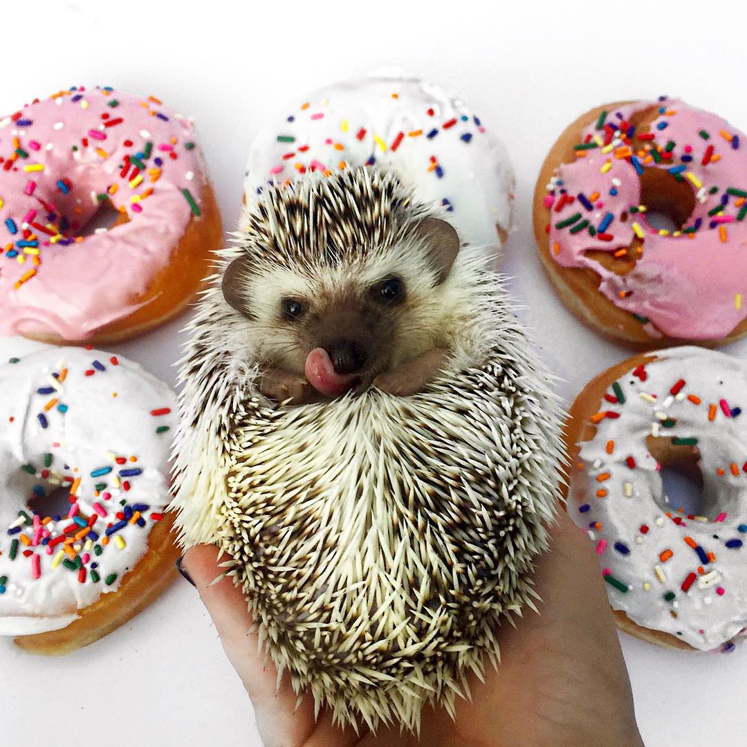 ▼小刺蝟也會吐舌頭呢,牠吃了很多甜點嗎?