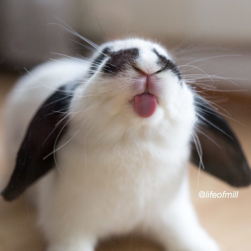 ▼兔兔好可愛啊,吐舌頭的樣子讓人心都融化了。