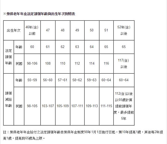 ▼最後關於勞保年金究竟幾歲可請領,以及如何計算增額、減額等問題,相信很多人也是霧煞煞,因此勞保局特別製作了下面這張表格來幫助大家,如果還有不清楚的,也可以洽詢各地方勞保局諮詢喔!