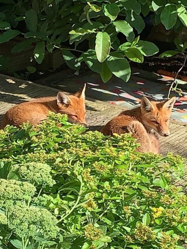 ▼Foxy在Emma家的後院住得太舒服,竟帶來手足一起住。Emma很喜歡小狐狸們,也認為牠們很安全,但為了讓牠們保持警戒心,以免過度依賴人類,還是會儘量避免觸摸牠們,只會給牠們餵食。