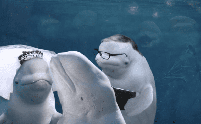 2021年09月16日沒有人希望婚禮上出現不速之客,但美國康乃狄克州(Connecticut)一對新人在水族館舉辦婚禮時,一隻白鯨突然現身,站在他們身後搶鏡。白鯨搶走了新人的風頭,但沒有人不高興,這張獨特的婚禮照片還成為了獨特的回憶,在網路上引發討論。