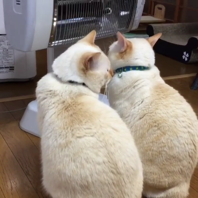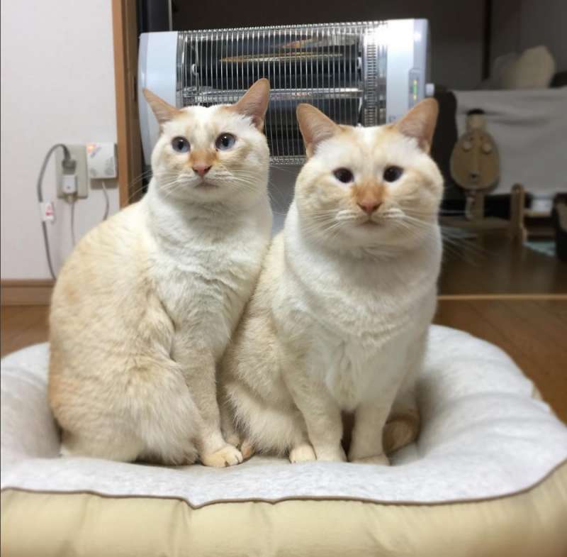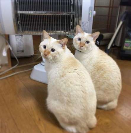 2021年09月16日中秋節烤肉時,想吃甜食總會買上棉花糖,看棉花糖串在烤爐上慢慢烤出漂亮的焦黃色,令人垂涎三尺呢,這天,網友鏟屎官「misokoro」進房間,發現地上怎麼有兩坨圍著暖爐烤的焦黃焦黃的大棉花糖,定睛一看,原來是喵皇呀~兩隻喵皇轉頭一看,哎呀~鼻子烤焦了!