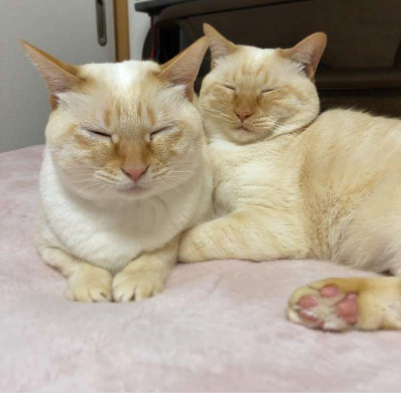 ▼兩隻喵喵已經四歲囉,平常沒事就喜歡依偎在一起。