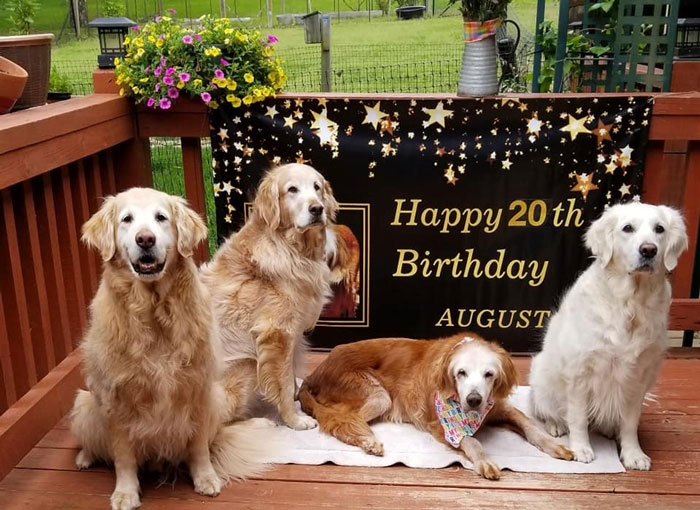 ▼為了幫Augie慶祝意義非凡的20歲生日,Augie的主人Jennifer和Steve特別準備了狗狗也能享用的胡蘿蔔生日蛋糕,還特地找來了Augie的兄弟姊妹,陪Augie一起歡度這個特別的日子。