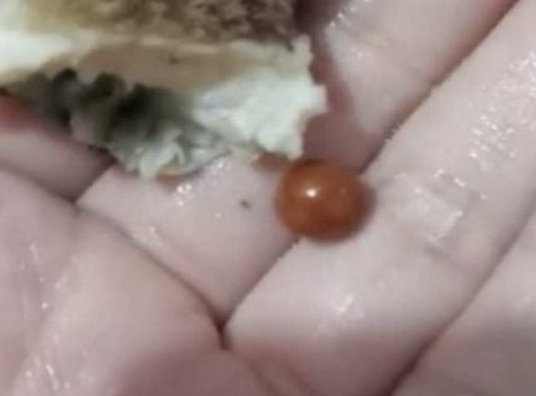 最近陳女到河北省秦皇島市旅行,在當地花人民幣10元(約台幣42元)買了一些普通海螺。她回家吃海螺時,突然咬到一顆珠子,當下只是覺得這顆珠子很漂亮,很像動畫《七龍珠》裡的龍珠,就拍照po到了社交平台上。