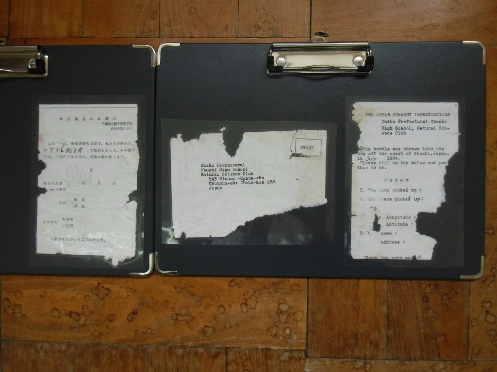 ▼銚子高中表示,學校在1984年曾放出450個瓶中信,隔年又放出300個,截至目前為止,共有51個被寄回學校,還有的分別在美國華盛頓、加拿大、菲律賓和太平洋中部的馬紹爾群島被發現。學校的副校長表示,他們一度以為其他的瓶中信都沈入海底,沒想到還有人撿到,希望更多瓶中信能被人拾獲!