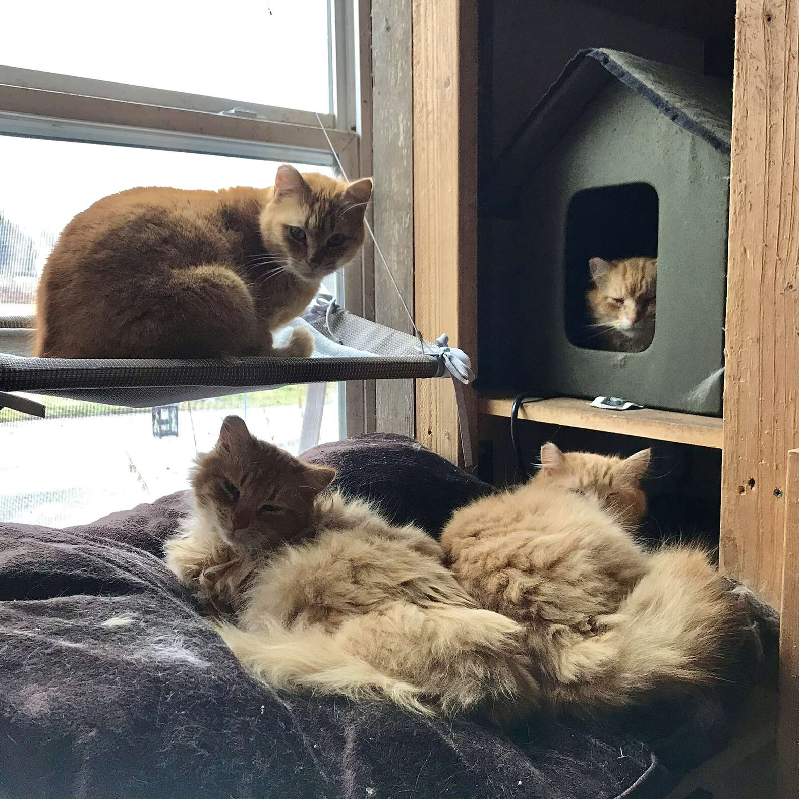 除了原本就住在農舍的15隻貓咪,Emily和Dylan還收養了另一隻貓咪Tofey。他們的目標是建立一個私人動物保護區,幫助更多有需要的浪貓,給牠們一個能夠遮風擋雨的港灣~