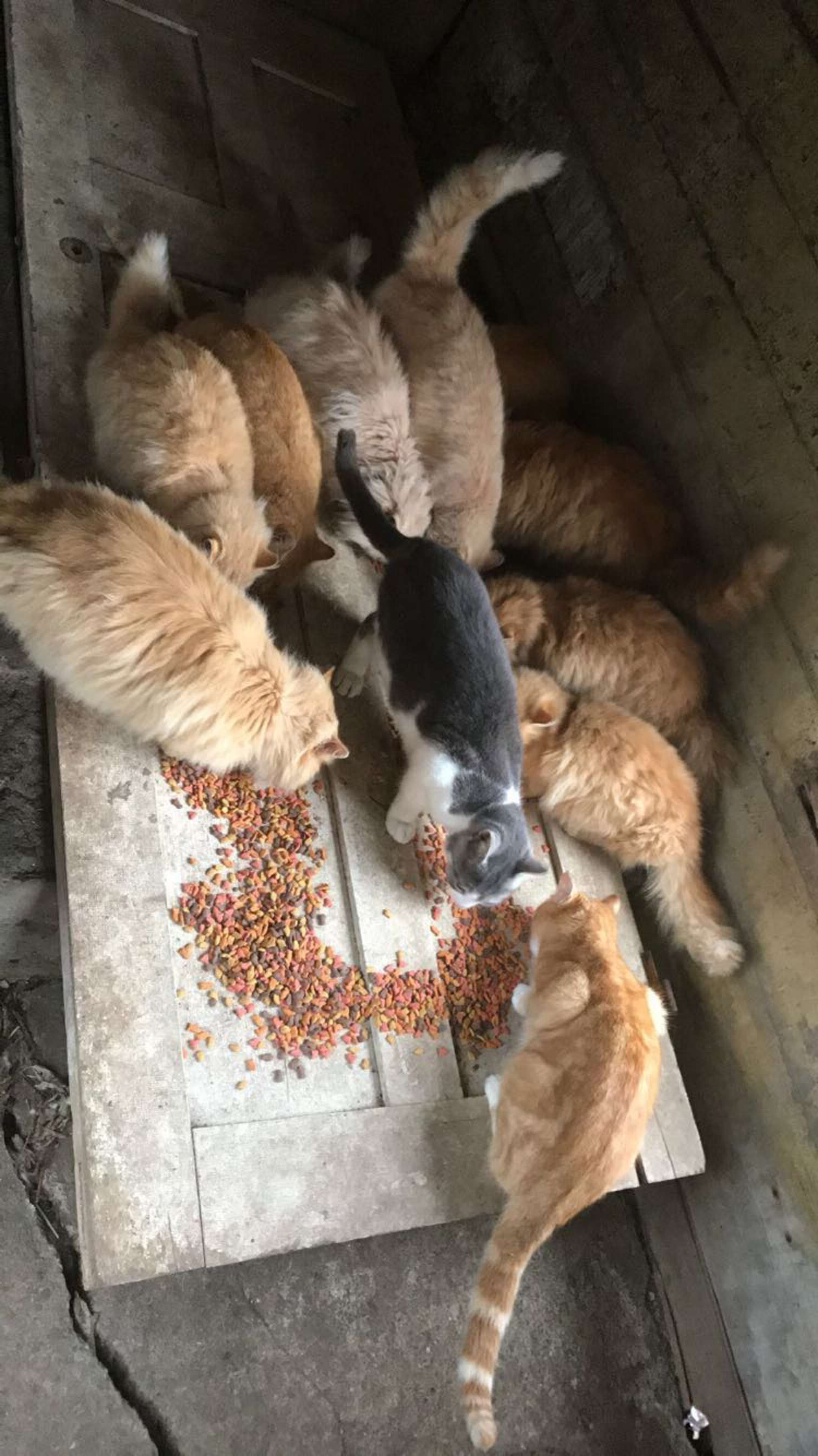 ▼前任主人沒有給貓咪們餵貓糧,而且其中一些貓咪還有健康問題,牠們也沒有做過絕育。Emily和Dylan立刻承擔起照顧貓咪們的責任,確保農舍中的15隻貓咪能吃飽喝足、身體健康。接下來他們要做的,就是贏得貓咪們的信任。