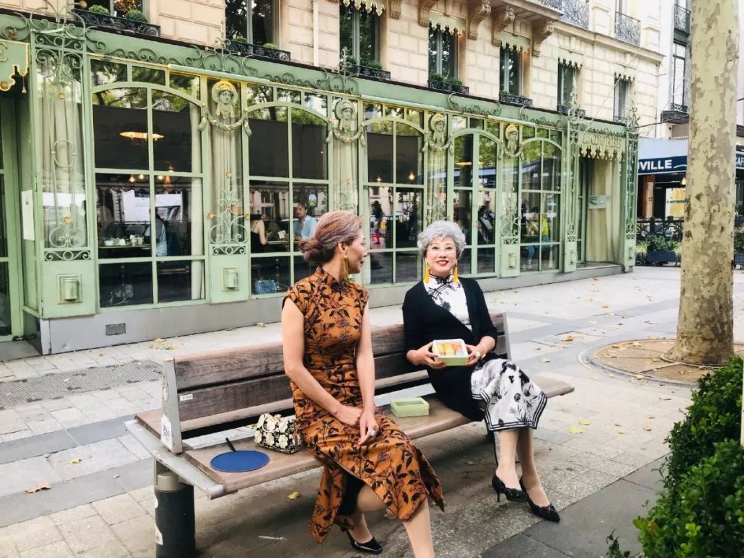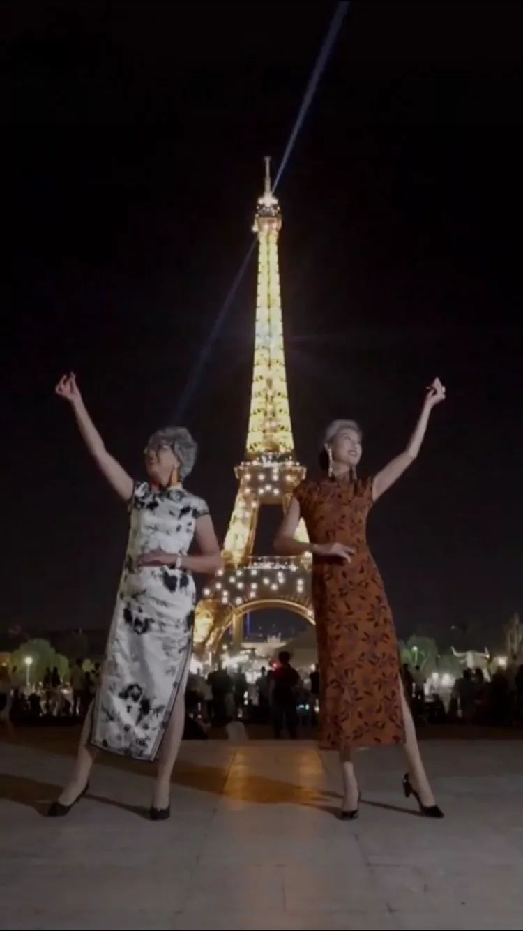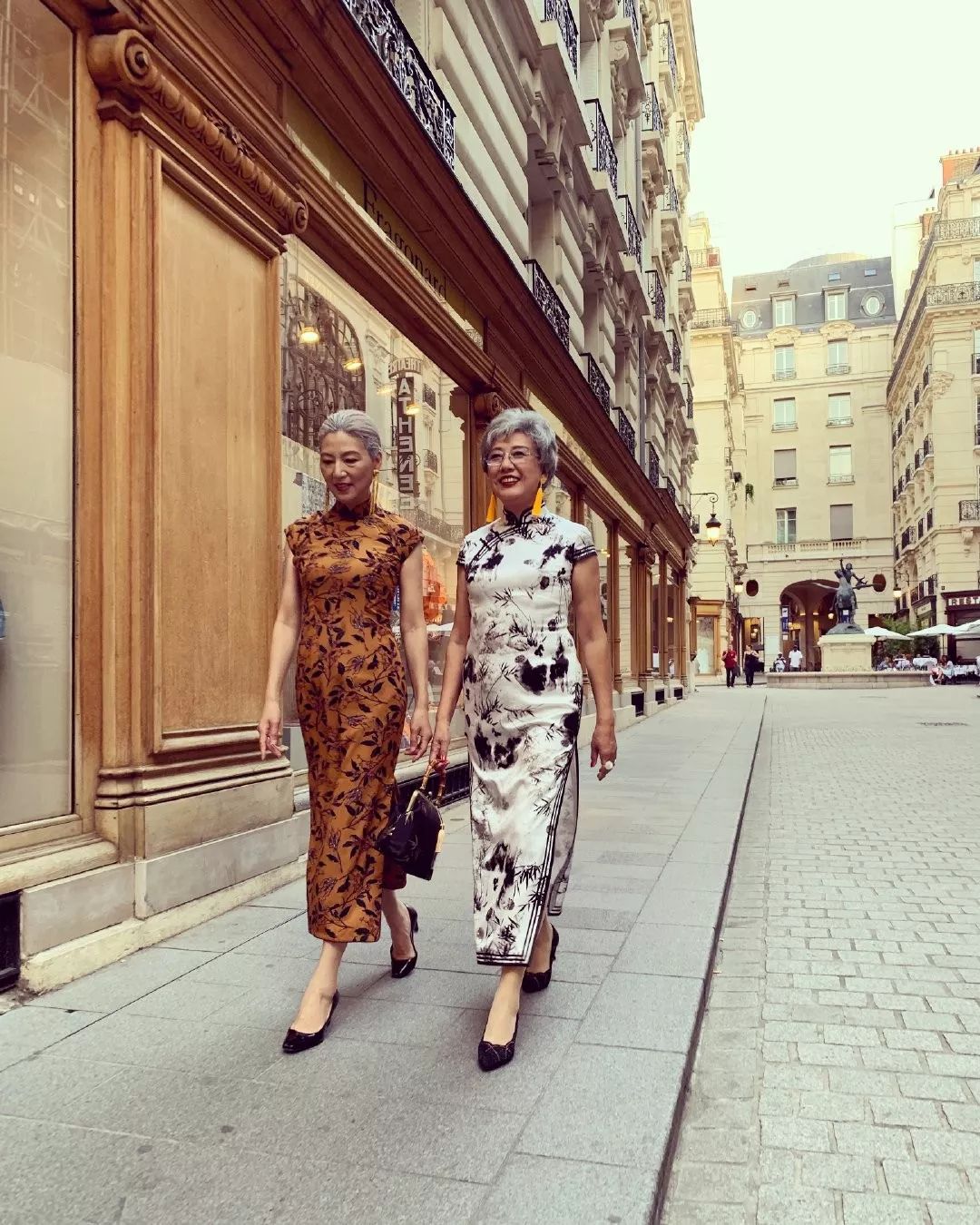 相加120歲依舊絕美!2位「神仙奶奶」穿旗袍遊巴黎 優雅氣質「連帥哥都上門合照」