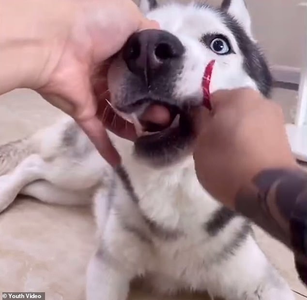 ▼狗狗吃辣子雞時眼淚流個不停,飼主非但不心疼,還在旁邊肆無忌憚大笑,說:「牠吃得很香!」
