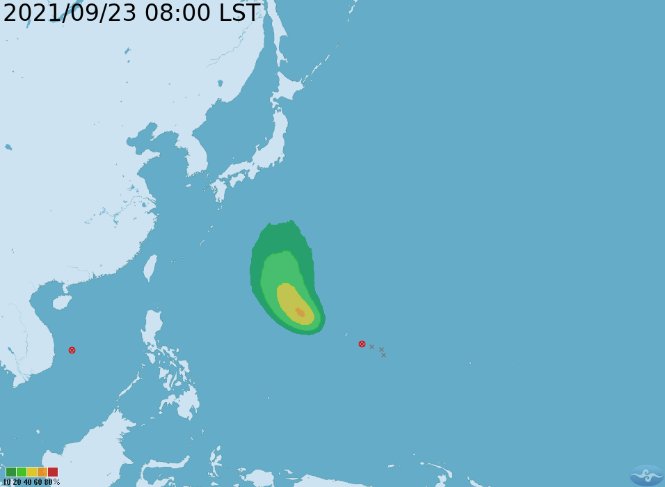 中央氣象局氣象預報員朱美霖表示,昨天(22日)下午2時,關島東南方海面形成一個熱帶性低氣壓,未來會朝西北西方向移動,明後天(24、25日)往北迴轉,接近日本南方海面,對台灣沒有影響。