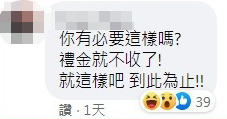 ▼許多網友看到貼文後忍不住批評道,「當初包多少,就還多少就好了,擺明就是來討禮金回去的而已」、「看他當初包多少,就回一模一樣回去,就此斷絕往來」、「超扯,事前都知道了還不加桌」、「多少也攸關自己的面子,就回個1200吧」、「下次有位子再包」、「沒位子,自己可以安排朋友桌改日子補請,不然沒給人吃怎麼好意思收禮」。