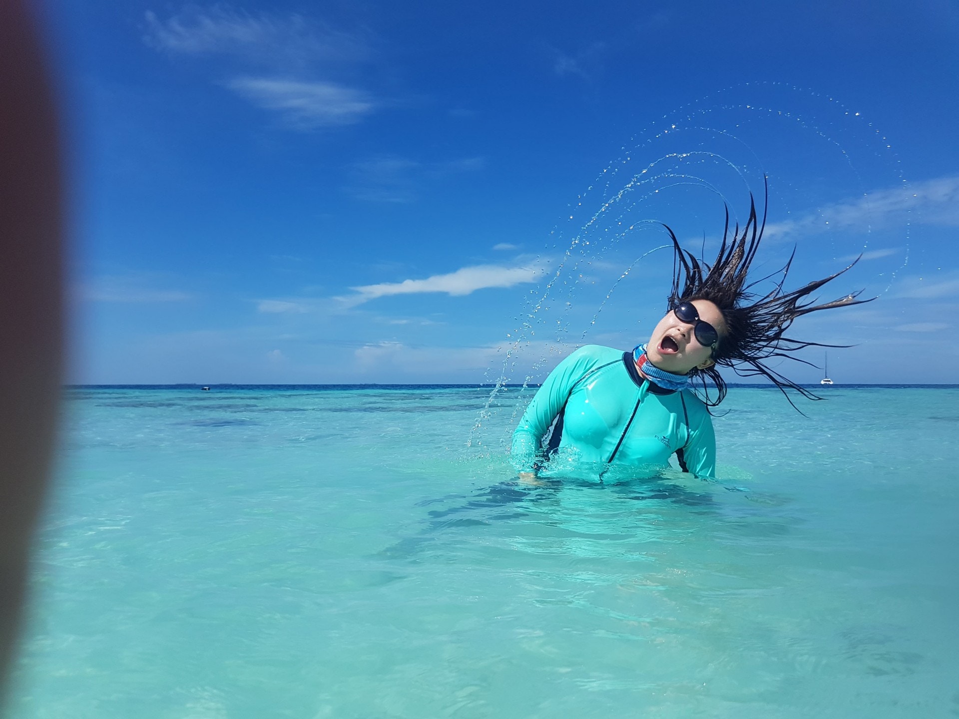 ▼一些網友好奇,為什麼她沒有穿比基尼、化妝,想拍好看的沙灘照,這些是必備的。女網友解釋說,馬爾地夫是回教國家,只有特定的地方才能穿比基尼。她為了防曬特別穿了防曬衣,浮潛時也沒有化妝,想保護海洋。