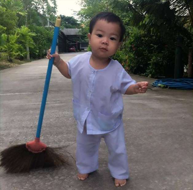 又要早起、又要勞作,這對當時只有2歲半的小孩來說真的辛苦了一些,幸好師父也沒有對他太嚴格啊。長出頭髮的龍坤也太帥了,一臉正氣,讓大姊姊都等不及想看他長大變大帥哥的模樣啊!
