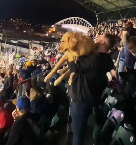2024年03月08日《獅子王》中的經典畫面重現了~日前在美國西雅圖的一場美國職業大聯盟西雅圖水手的比賽中,舉辦了一項名為「在公園中吠叫之夜(Bark at the Park Night)」的活動,球迷們可以帶自家愛犬到現場。飼主們跟著活動鏡頭的指示,把狗狗高高舉起,這一幕看起來很壯觀。