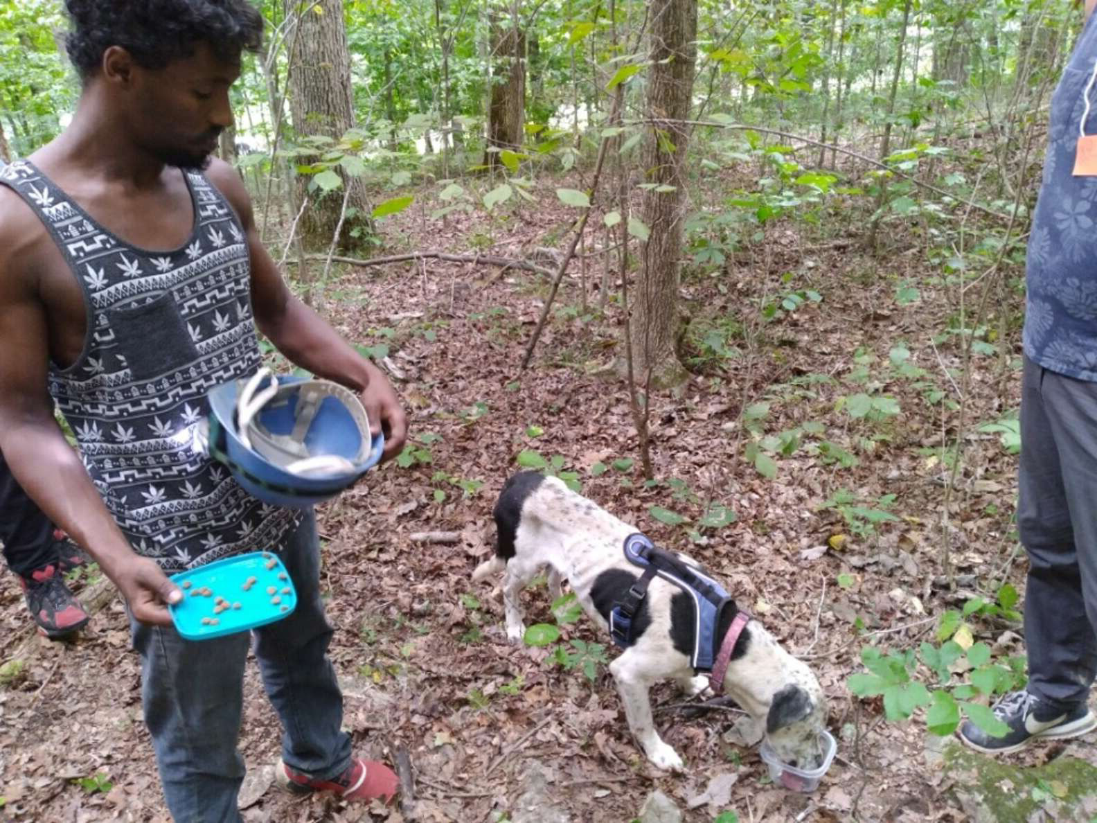 2021年10月06日日前國外一群徒步者去印第安納州的「Dewey Hickman Nature Preserve」旅行時,發現一隻狗狗被困在一個又窄又深的洞穴裡。洞穴深約9公尺,狗狗無法自行爬上來,而且牠身體瘦弱,可能已經被困好幾天了。如果沒有人救牠,牠根本無法活下來。