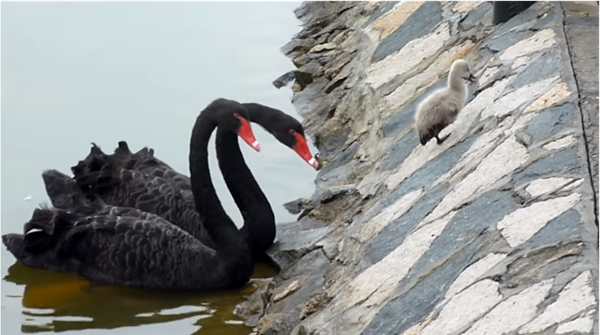 2021年10月07日動物父母帶小孩也很辛苦~最近一段有趣的影片在網路上流傳。影片的主角是一個黑天鵝家庭,那天天鵝爸媽準備教小天鵝游泳,但小天鵝不想學,牠不敢跳下水,不管爸媽怎麼叫,都堅持待在岸上。天鵝爸媽很無奈:「游泳是必須學會的技能啊。」