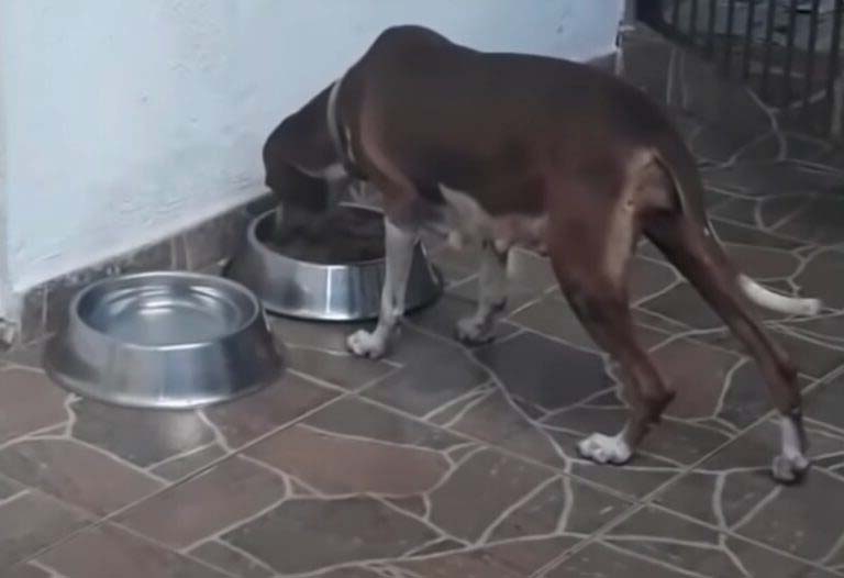 ▼救援人員給狗媽媽準備營養豐富的食物和飲用水,牠吃飽喝足後很快恢復體力,立刻去給小狗們餵奶。小狗出生的第一個月,只能靠狗媽媽的奶維生。如果狗媽媽吃不飽,不僅自己的身體會變得很差,小狗們也很難活下來。