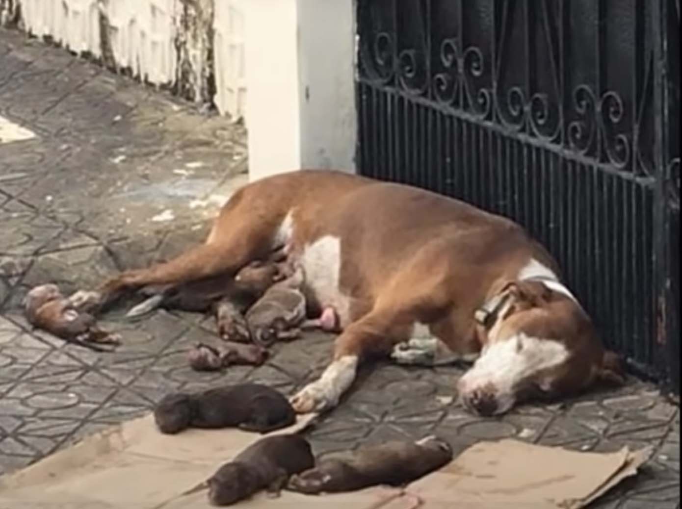 狗媽街頭分娩!「餓到沒力氣」沒能再爬起來 奇蹟趕到終於「母子均安」