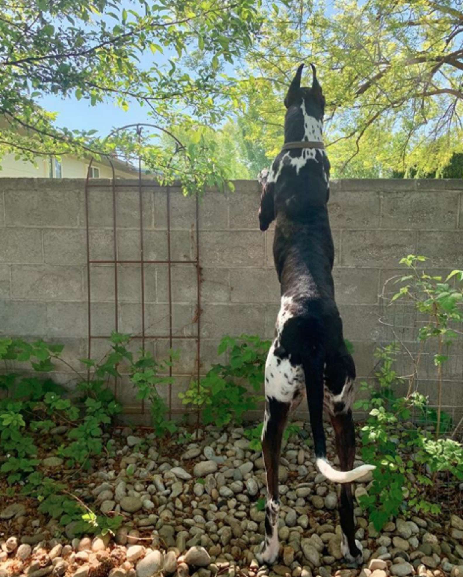 拉拉愛上鄰居大丹犬! 被圍牆隔離…主人巧思「幫牠長高」網友萌翻❤️