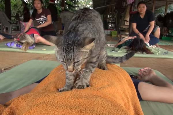 肉球之力!虎斑貓化身師傅「給客人泰式按摩」 牠超努力:自己的罐罐自己賺