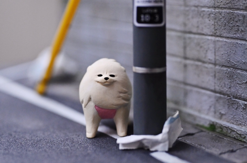 ▼這位動物造形作家跟stasto合作推出的「博美系列扭蛋」(アニマルアトラクション ぽめさんぽ)共有6種款式,包括被強風吹拂的博美、散步到不想回家繩子拉不動的博美、享受時尚的博美、發現紙袋新窩的博美、放鬆的博美、發現這不是我的飯博美。