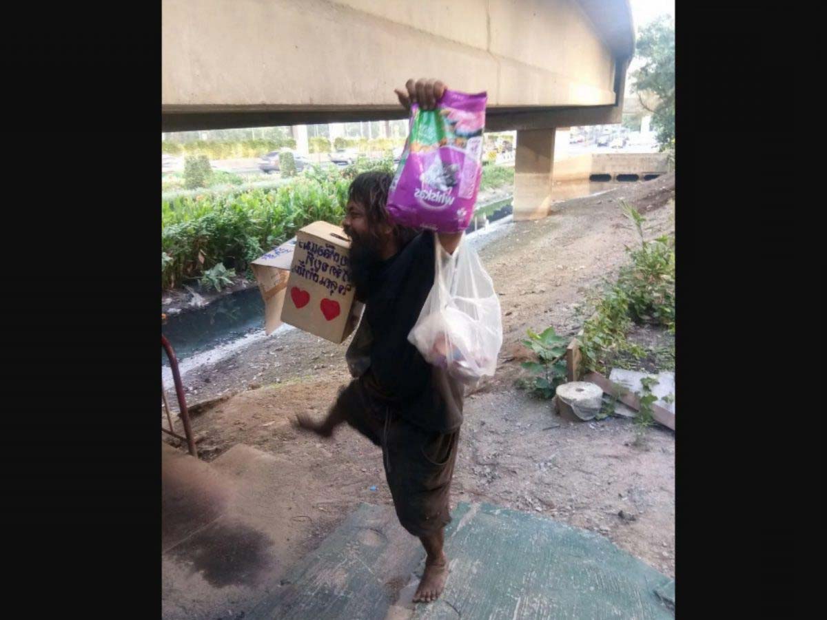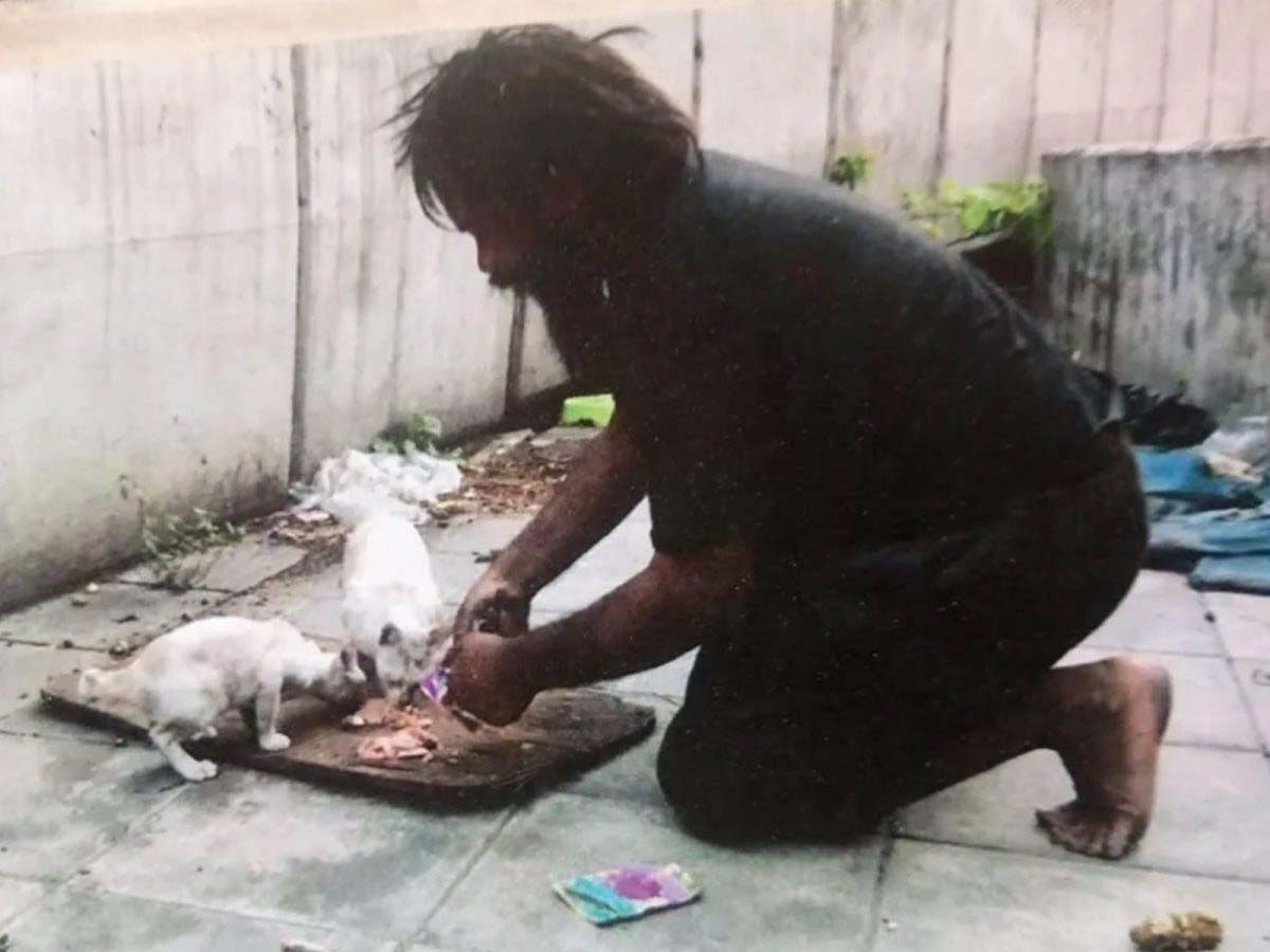 ▼當地一名叫Warunya的男子了解事情的經過,知道Dum一直在幫助浪貓。他說:「我們不應該因為一個人的外表而去定義他們是怎樣的人,Dum或許外表不修邊幅,但是他有顆令人感到溫暖的心。」