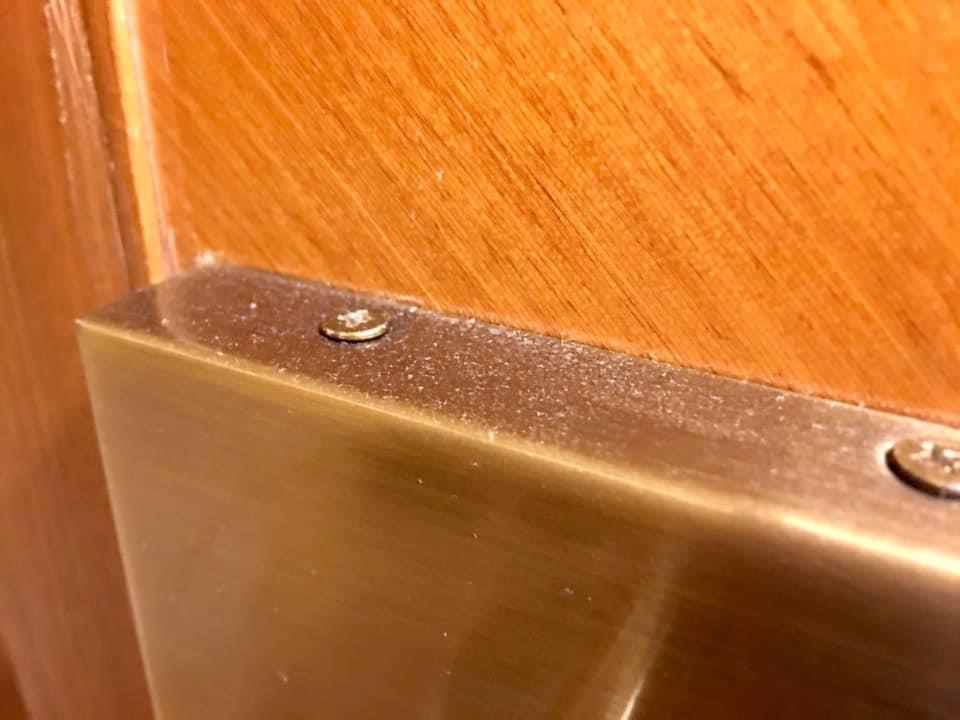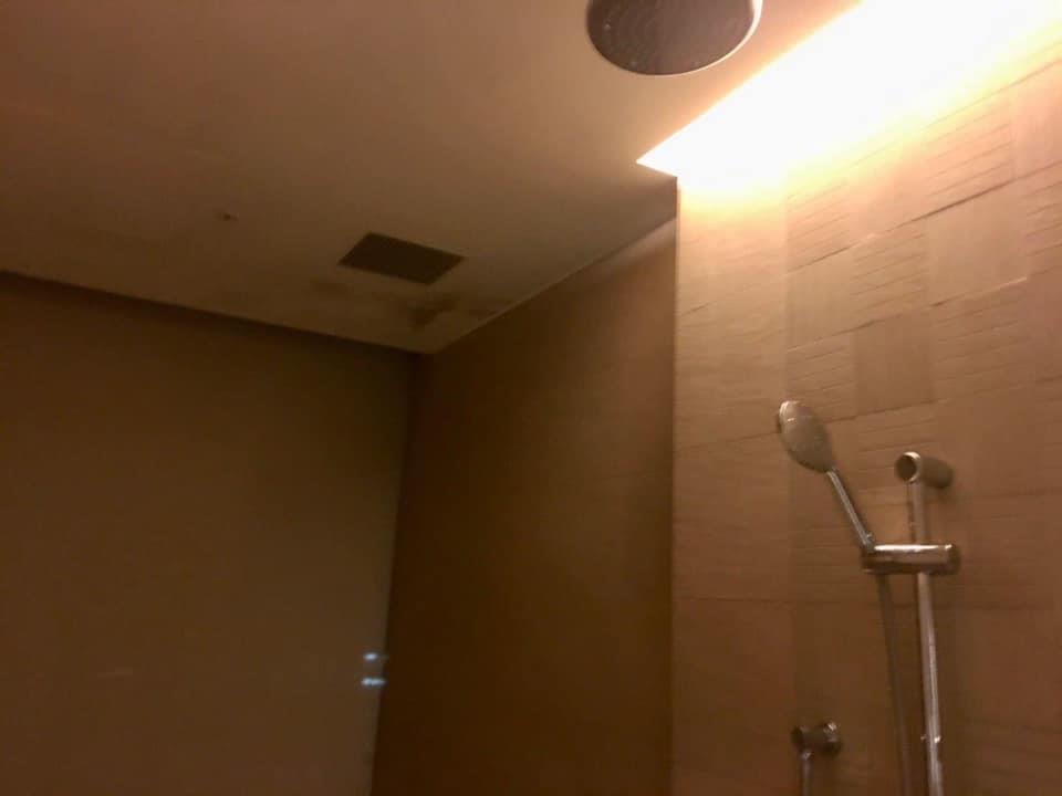 ▼客房內的情況也讓原po大傻眼。迎賓水果不知放了多久,已經開始軟爛;床下有垃圾;燈座及櫃子上有灰塵;床頭燈罩裡有蜘蛛絲;衣櫃大門搖來晃去。原po本來很期待溫泉浴池,沒想到天花板上有大片霉斑、窗簾和舀水的木盆也都發霉,她根本不敢泡進去。