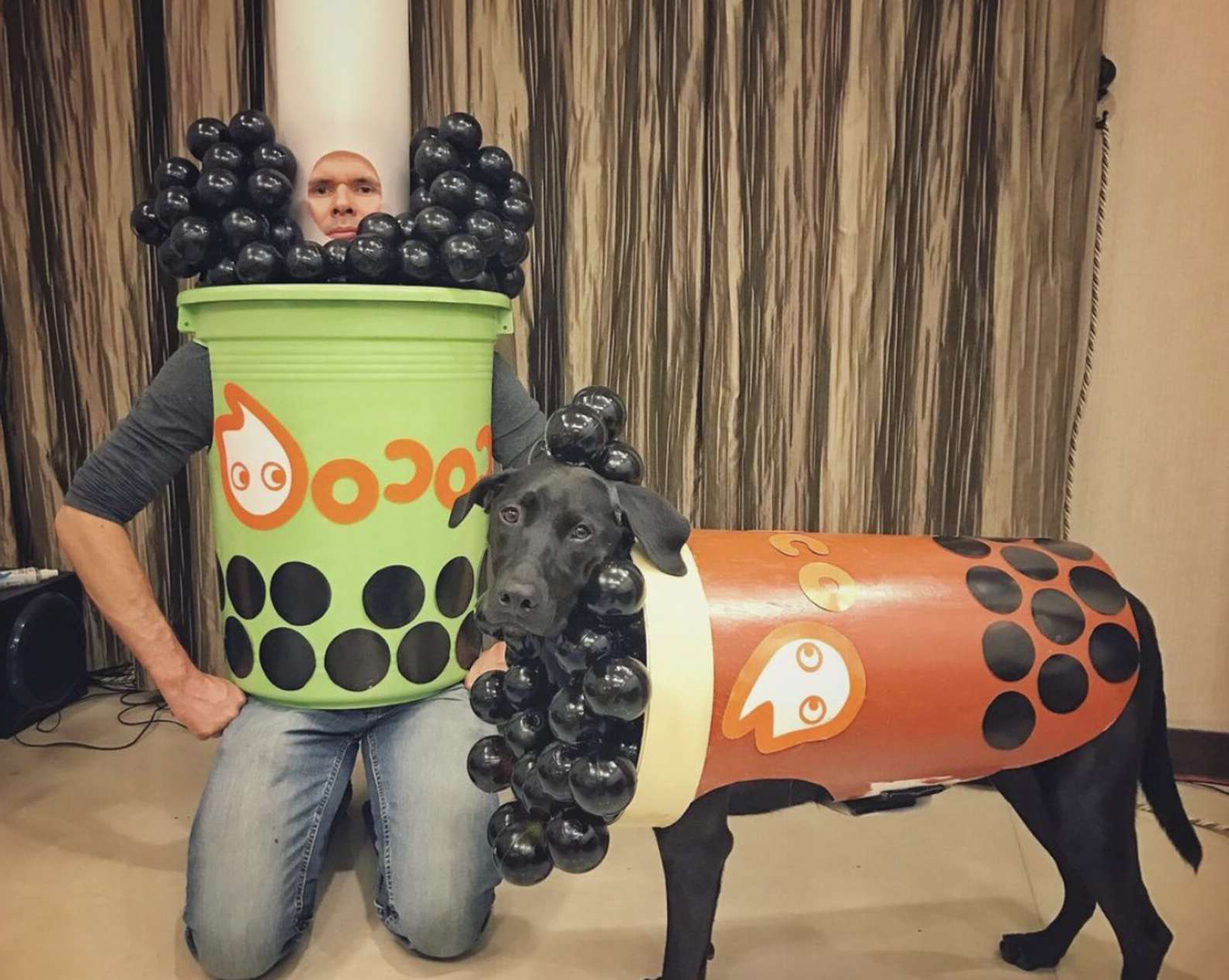 ▼後來Steve又收養了另一隻狗狗Beans,牠也加入了萬聖節大派對!現在Steve已經能夠很熟練地製作萬聖節服裝了,他能用毛氈、硬紙板、膠水製作可愛的道具。