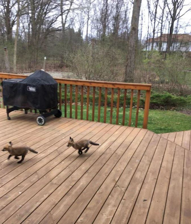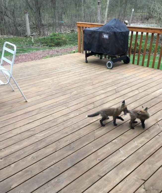 2021年10月20日有特別的客人來拜訪~日前美國伊利諾州的一位網友在奶奶家拍到了一組超萌的照片。只見2隻狐狸寶寶跑來玩,牠們在門廊上跑來跑去,還趴在門窗邊好奇地往屋內看,甚至吐舌頭賣萌,好像在說:「有食物給我們吃嗎?」那可愛的畫面讓人心都要融化了。