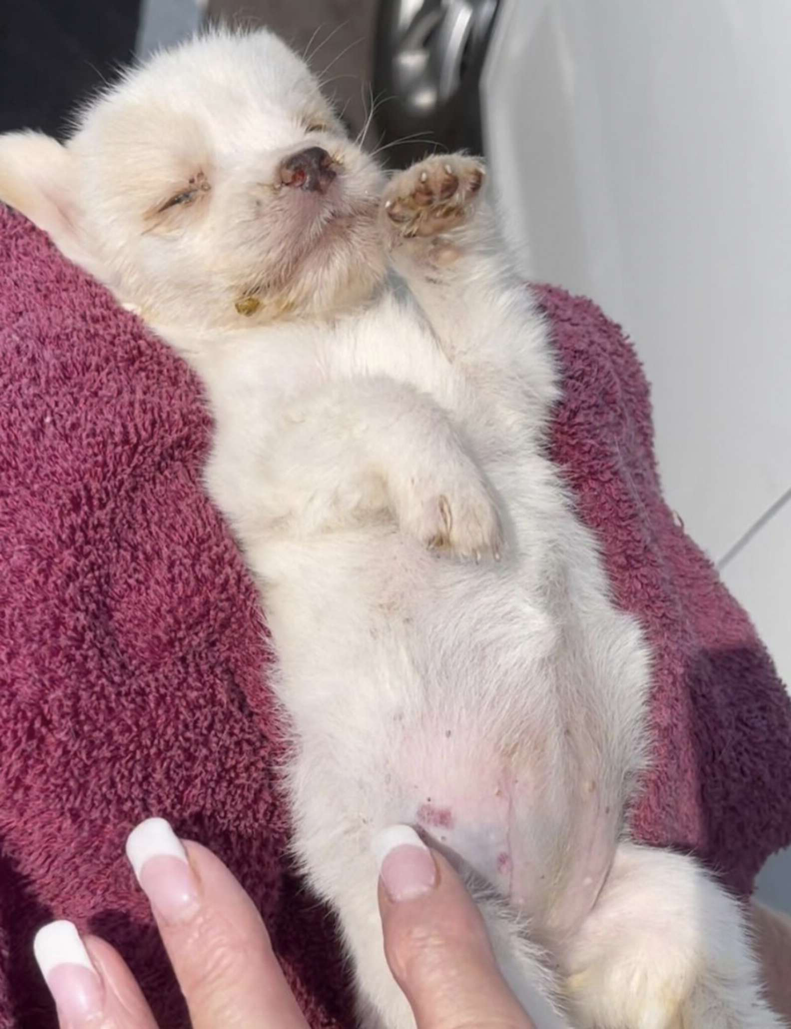 2021年10月22日國外女子Elli Smith是一個動物救援機構的創始人,日前她去收容所營救一隻狗狗時,竟遇到了一位女士捧著一隻一動不動的小狗來求助。當時Smith就想,這隻小狗的情況看起來很糟糕,牠可能會被安樂死。於是她將自己的名片給了那位女士,希望能夠提供幫助~