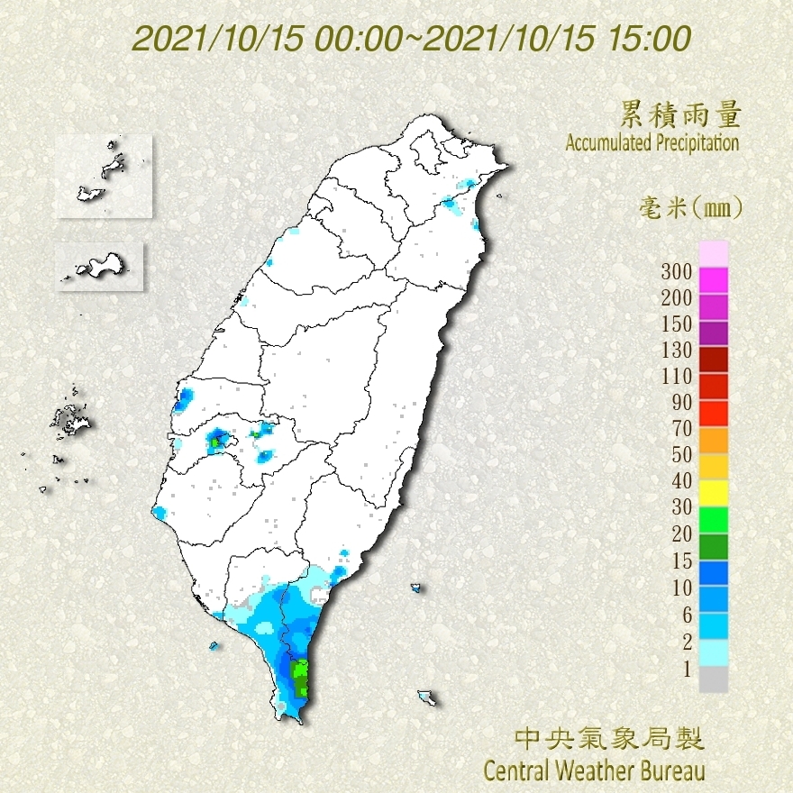 ▼中央氣象局表示,今天至明天(15至16日)上午各地大多為多雲到晴,台灣東半部地區、大台北山區及馬祖有局部短暫陣雨,午後中南部地區有零星短暫雷陣雨。明天下午起東北風增強,北部及東北部天氣轉涼,北部及東北部地區有陣雨,晚起並有局部大雨發生的機率,東部及東南部地區有局部短暫陣雨,其他地區為多雲,午後中南部地區有局部短暫雷陣雨。