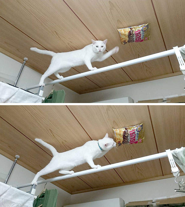 ▼貓咪突然從天花板上沖下來,簡直是天降正義。