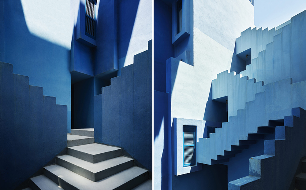 ▼La Muralla Roja在西班牙語中是「紅牆」的意思,Ricardo Bofill從北非卡斯巴古城(Kasbah)和地中海阿拉伯建築中汲取靈感,將庭院、開放式樓梯與橋樑等伊斯蘭建築的傳統元素融合進來,再加上粉色和藍色的色調,讓這座建築成為永恆的經典。