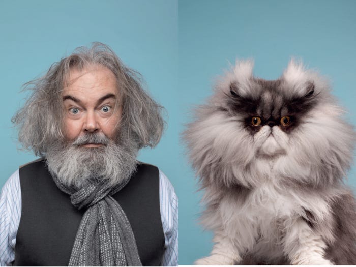 ▼Gerrard說:「我發現人們好像不太容易將人的某個特色跟貓咪聯想到一起。我們其實是可以從一些人身上找到某些貓咪的氣質的。只是這種聯想比較微妙,不像跟狗狗配對時那樣有明顯的外型特徵。所以給貓咪和人物配對,複雜度會更高!」