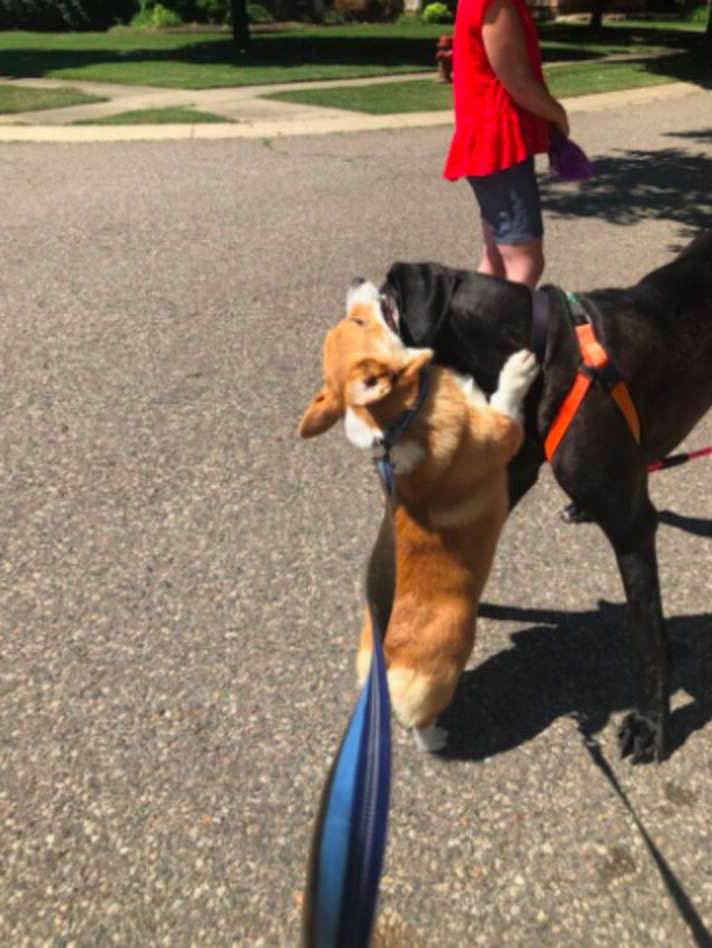 「很高興遇見你!」小柯基散步遇誰都要抱 見大丹犬「小短腿踮超高」