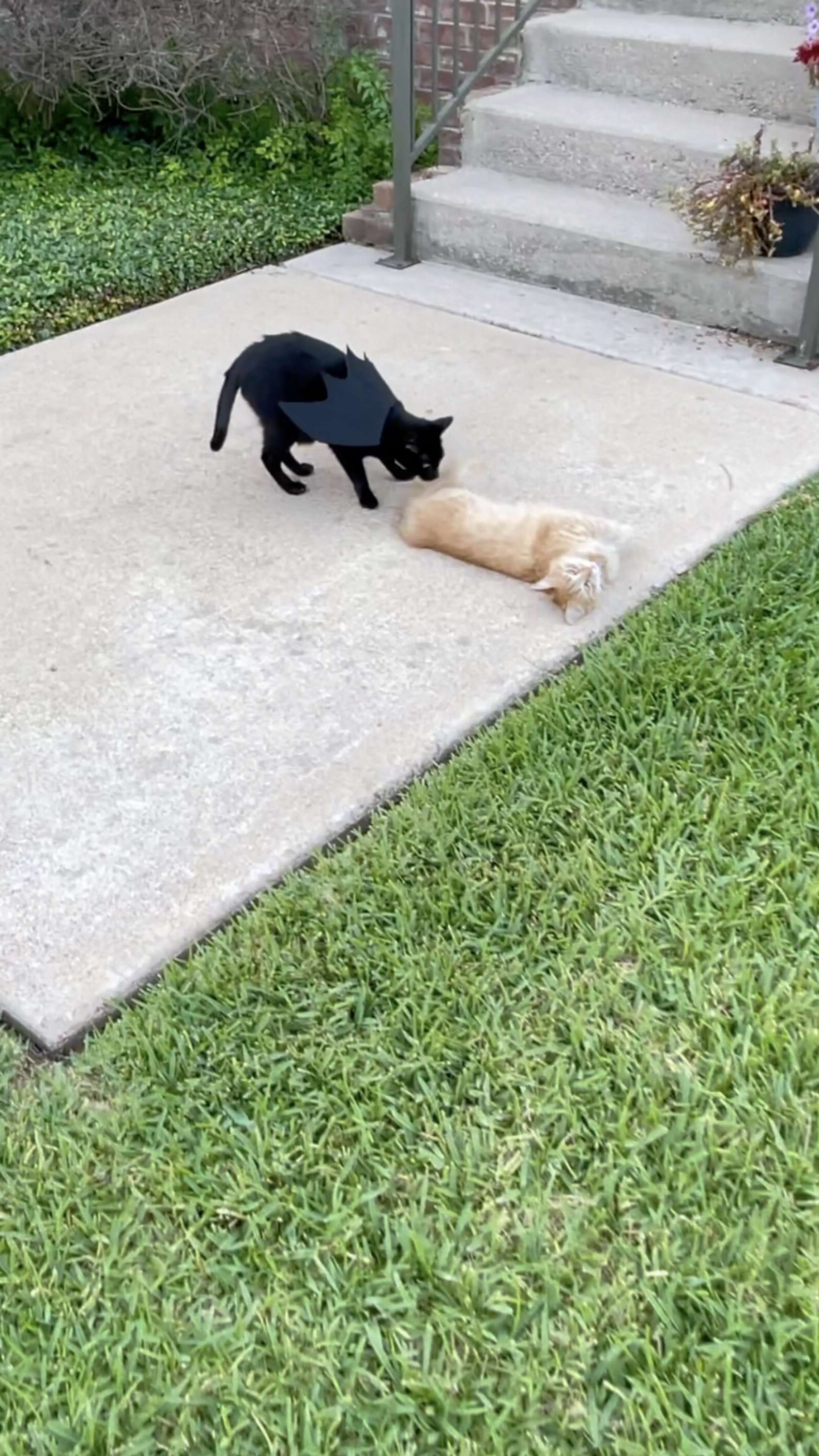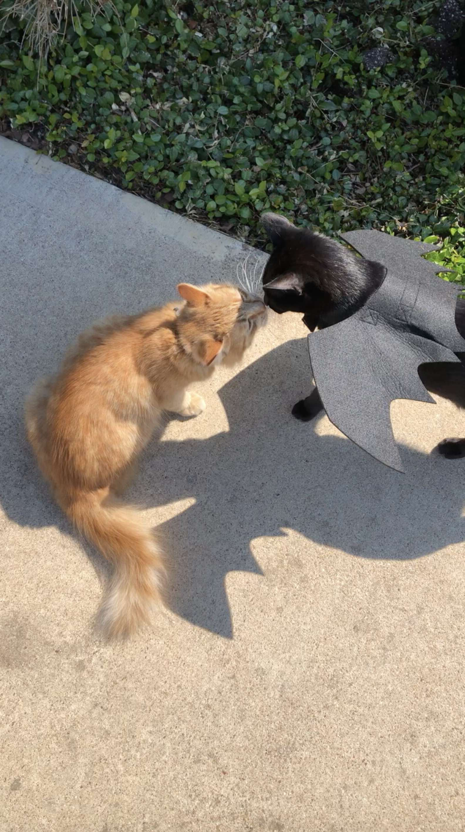 ▼Shakira是一隻很害羞的貓咪,剛開始不願意靠近Nick。後來Nick戴上了蝙蝠翅膀,Shakira才漸漸卸下心防,牠會好奇地過來觀察、聞嗅,2隻貓咪逐漸成為了朋友。