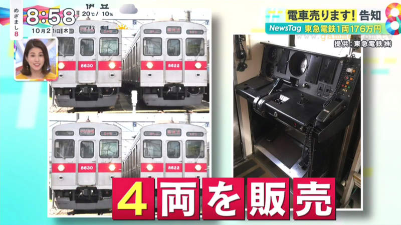 2021年10月26日最近日本鐵路公司「東急電鐵」在車站貼出告示,表示要販售電車車廂,這在鐵路迷們之間引發話題~原來這些準備販售的電車是1975年開始營運的「8500系」,已經走過46個年頭了。「8500系」中的大部分車輛已經淘汰、報廢,或被賣到國外,如今東急電鐵準備處理掉最後的4節車廂,開價176萬日圓(約台幣43萬元)。