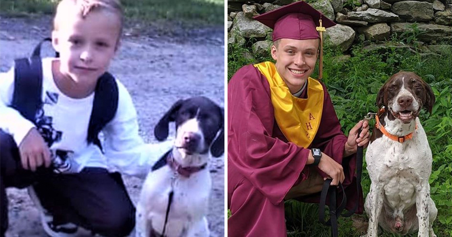 2024年02月17日孩子成長的過程中有狗狗陪伴,真是太幸福了~美國有一位高中生Dylan,他從小學一年級入學到高中畢業,都會拍照紀念。他的每一張紀念照上,都有一隻狗狗Ruger的身影。他和Ruger是見證了彼此成長的好夥伴。
