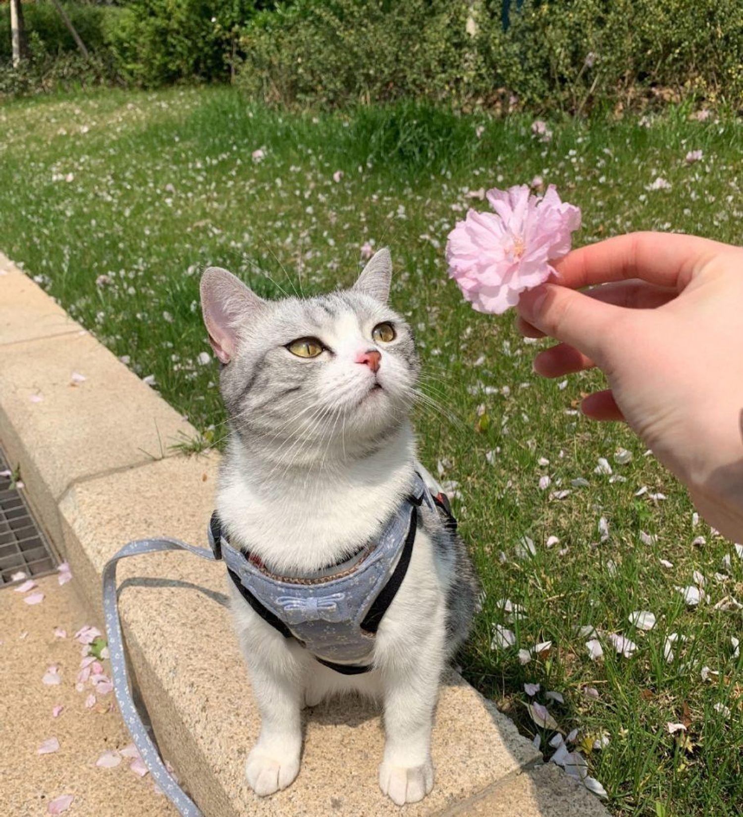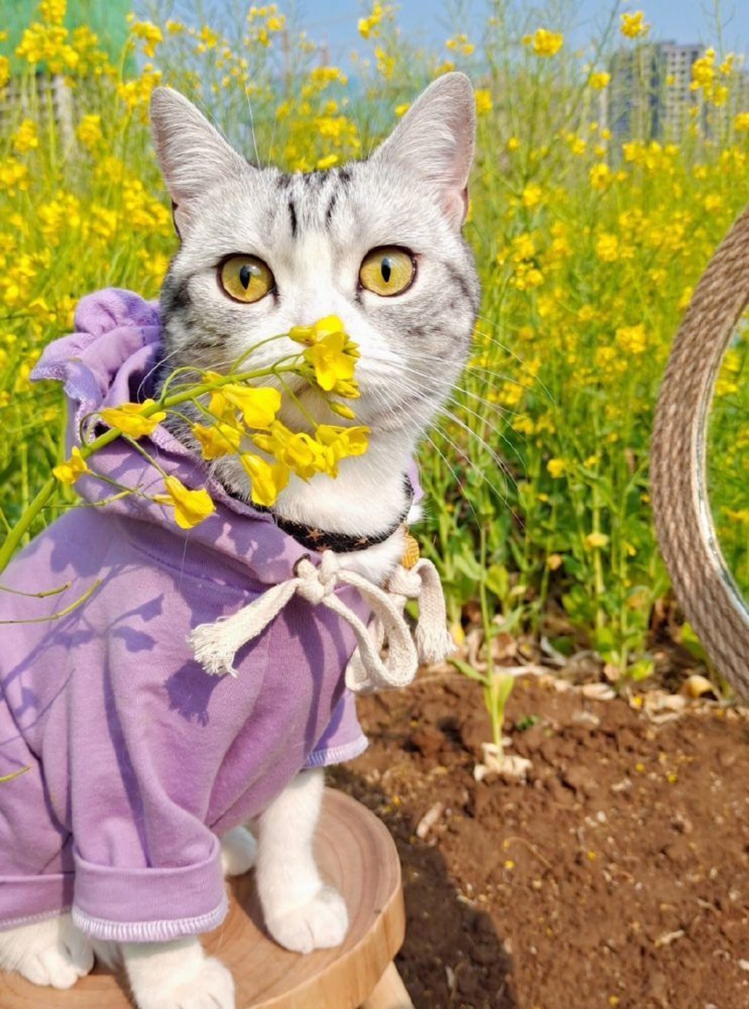 ▼主人經常帶牠外出散步。穿著漂亮衣服的泡芙加上美麗的風景,美得不可思議。美貓跟美景是絕配,怪不得網友們笑說,泡芙是無數小公貓心中的女神!